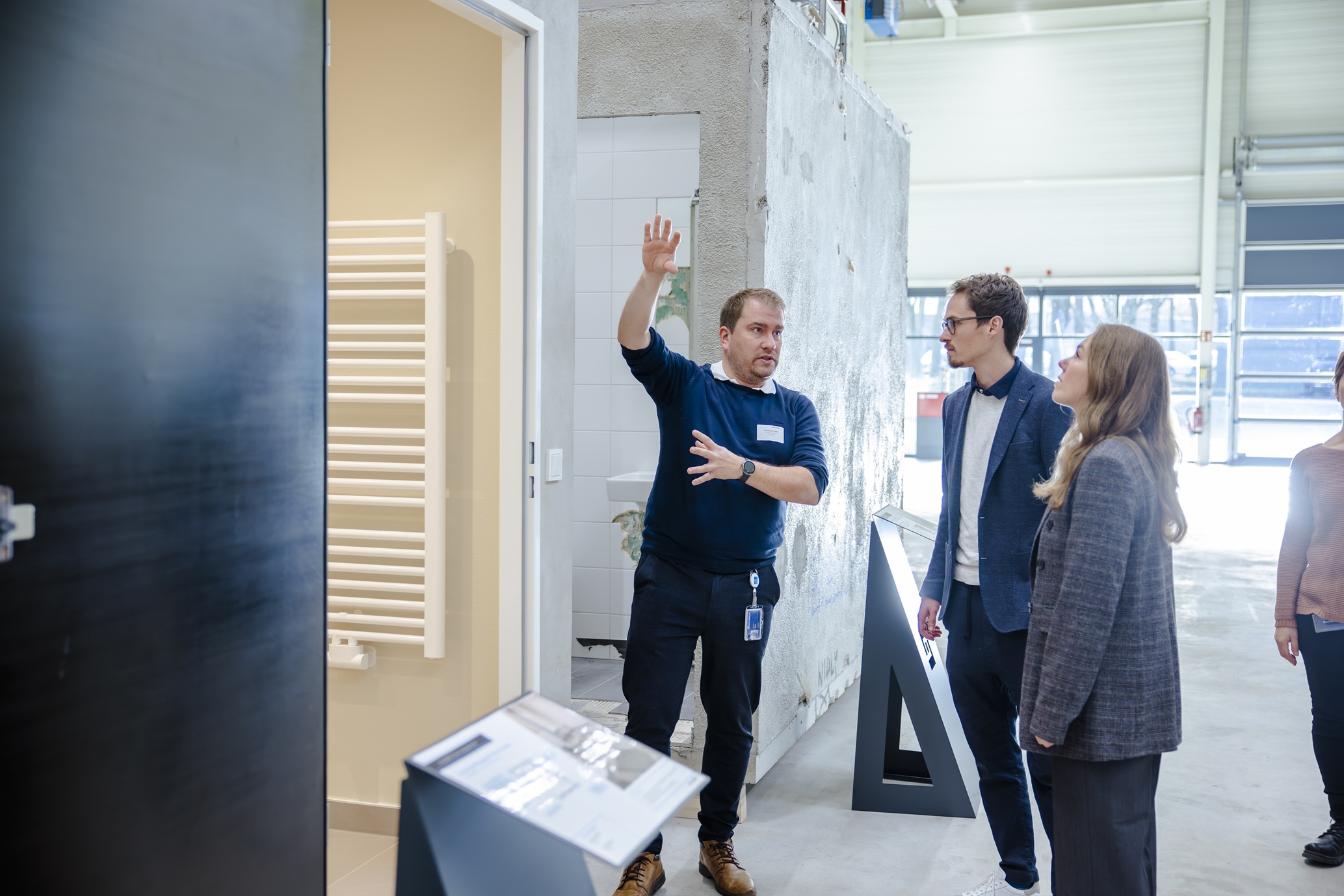 Innovationen können Expertinnen und Experten praxisnah im Technologiezentrum testen: Sie entwickeln zum Beispiel Bauteile für serielle beziehungsweise systematisierte Wohngebäude weiter – ein Produkt, das aktuell bei Goldbeck stark wächst.