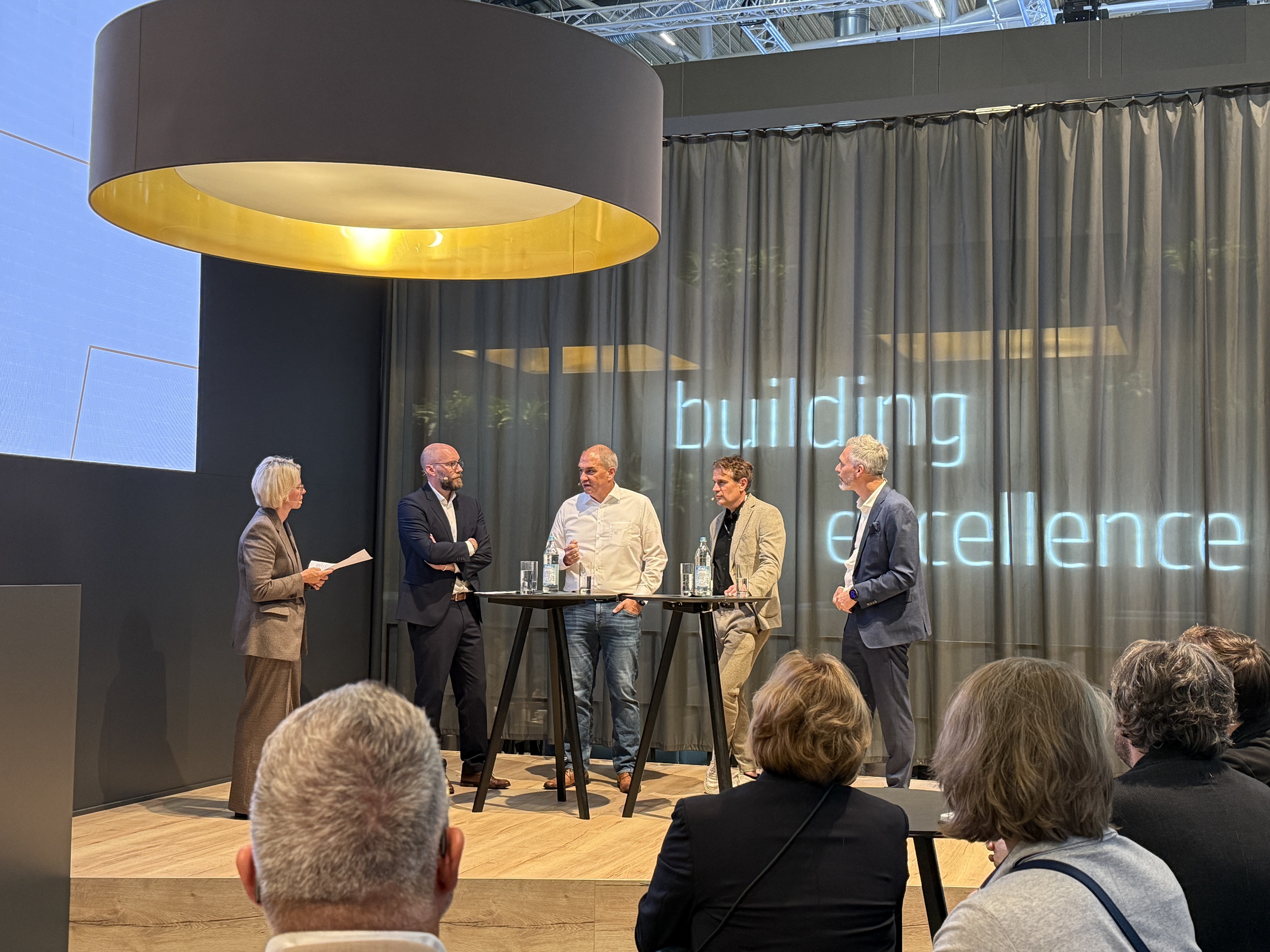 Die Verbindung von architektonischen Ansprüchen und seriellem Bauen war ebenfalls Teil der Messegespräche. Mit seinem systematisierten Ansatz zu bauen standardisiert Goldbeck alle sichtbaren Elemente von Gebäuden und individualisiert das Sichtbare. Holger Unkhoff, Geschäftsführer der Goldbeck West GmbH, machte deutlich: „Gute Architektur endet nicht beim Entwurf. Das serielle Bauen ist kein Gegensatz, sondern die logische und konsequente Umsetzung eines anspruchsvollen Entwurfs und Architekturkonzepts: Mit unserem systematisierten Ansatz sorgen wir für Wirtschaftlichkeit, Termintreue und Qualität bei Planung und Bau – das ist der beste Rahmen. Dabei ist die Zusammenarbeit mit externen Architekturbüros für uns eine große Bereicherung. Gemeinsam realisieren wir Lösungen, die funktional wie gestalterisch überzeugen.“ Über seine Haltung sprach er beim Panel „Architektonischer Anspruch und serielles Bauen – geht das?“ mit Vertretern der Öffentlichen Hand sowie Matthias Faber, Senior Partner von HPP Architekten GmbH und Jens Kreiterling, Vorstand von Landmarken AG.