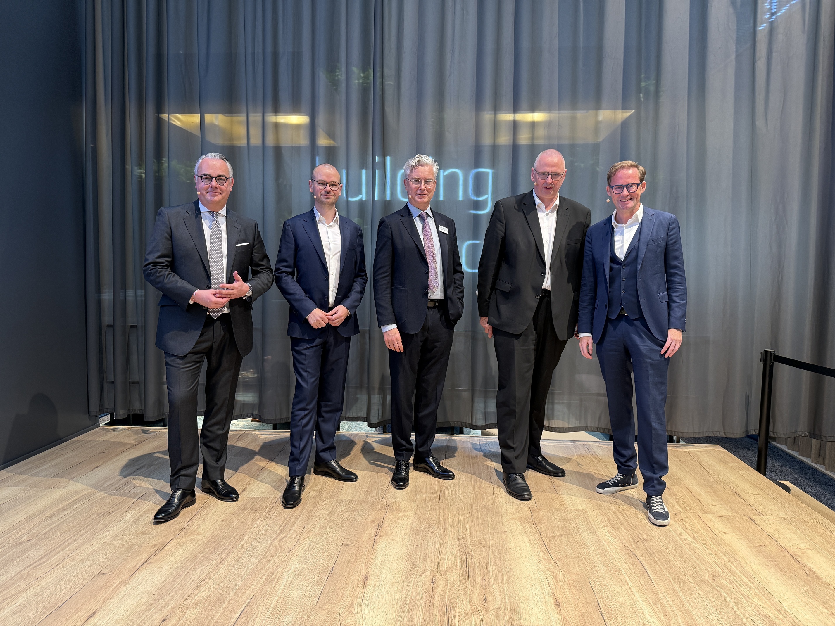Auf der Expo Real wurde deutlich, dass die Umsetzung angekündigter Reformen durch die Bundesregierung Voraussetzung für eine nachhaltige Stärkung der Bauwirtschaft sowie die Erhöhung der Schnelligkeit beim Bau in Deutschland ist. Maßnahmen wie der sogenannte Bau-Turbo gelten dabei als ein wichtiger Bestandteil. Zentrale Erkenntnis war dennoch, dass eine ganzheitliche Beschleunigung nur dann möglich ist, wenn Generalunternehmervergaben konsequent im Vergaberecht berücksichtigt werden. Um diese Themen ging es auch einer Podiumsdiskussion mit dem Titel „Das große Erwachen auf dem Bau? Was jetzt im Schulterschluss von Wirtschaft und Regierung passieren muss!“ Die Teilnehmer sprachen darüber, wie Baubranche und Politik gemeinsam die Gebäudeinfrastruktur des Wirtschaftsstandorts Deutschland stärken können. Jan-Hendrik Goldbeck, geschäftsführender Gesellschafter des Unternehmens, tauschte sich mit Dr. Olaf Joachim, Staatssekretär des Bundesministeriums für Wohnen, Stadtentwicklung und Bauwesen, dem Vorstandssprecher der Bundesanstalt für Immobilienaufgaben Prof. Dr. Alexander von Erdély und Tim-Oliver Müller, Hauptgeschäftsführer des Hauptverbands der Deutschen Bauindustrie, aus. Alle Teilnehmer betonten, dass nur in Kooperation von Politik und Wirtschaft wichtige Gebäudeinfrastrukturprojekte schnell in die Umsetzung kommen.