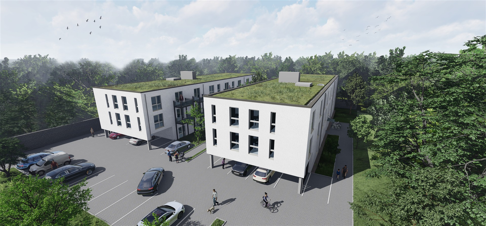 Die beiden Baukörper entstehen durch Goldbecks systematisierte Bauweise. Die Gebäude fügen sich harmonisch in die Umgebung ein und sind mit den Balkonen einander zugewendet. So entsteht ein Kommunikationshof, der Gemeinschaft in einem attraktiven Wohnquartier schafft. Der Kommunikationshof ist zudem begrünt. Beide Gebäude erhalten darüber hinaus eine extensive Dachbegrünung, die zur Regenrückhaltung beiträgt.