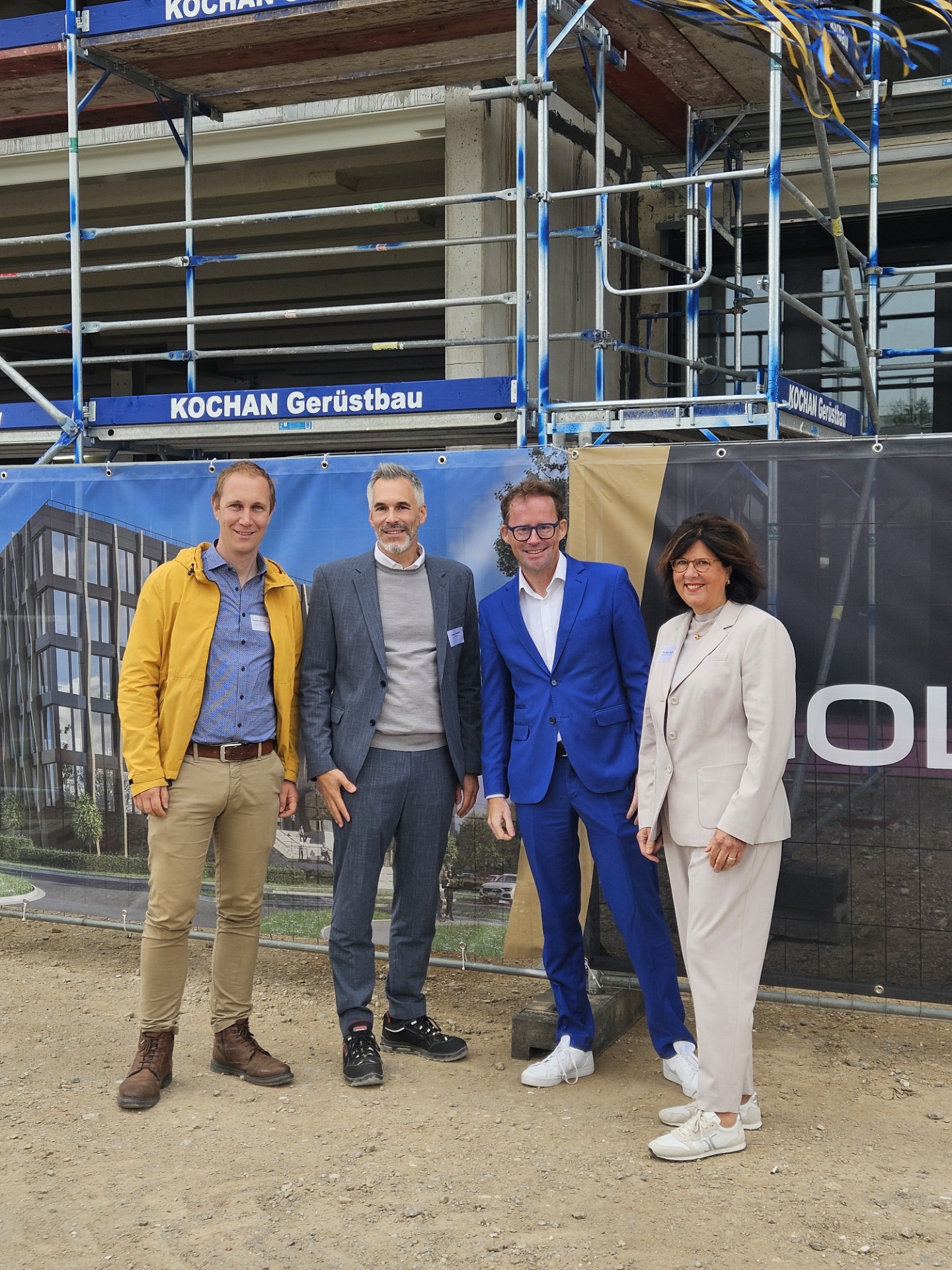 Ein besonderer Programmpunkt ist die Live-Montage eines Außenwandelements – ein anschaulicher Einblick in die systematisierte Bauweise bei Goldbeck. Goldbeck fertigt wesentliche Bauelemente industriell in eigenen Werken vor und montiert sie passgenau auf der Baustelle. Dies ermöglicht eine wirtschaftliche, schnelle und qualitativ hochwertige Umsetzung. Das hohe Bautempo auf der Baustelle unterstreicht die Effizienz dieser Methode. Der im April begonnene Rohbau mit sechs Vollgeschossen ist bereits abgeschlossen. Als nächste Bauschritte folgen die Errichtung der Pfosten-Riegel-Fassaden, parallel dazu startet der Innenausbau. Die Fertigstellung ist für Ende des Jahres 2026 geplant. Goldbeck nutzt künftig vier Etagen selbst, die oberen beiden Geschosse werden vermietet.