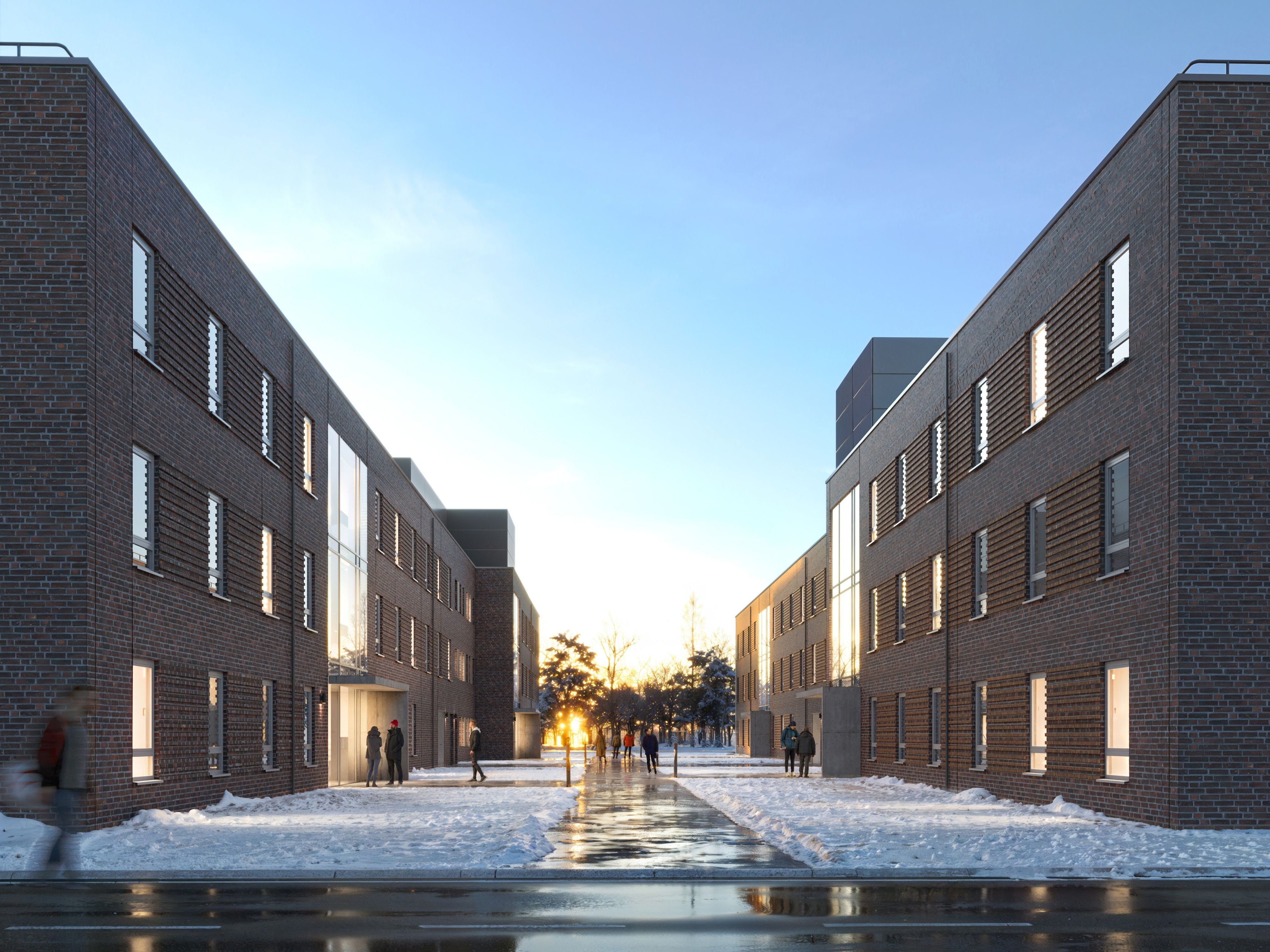 Der Gestaltungsrahmenplan verleiht der gesamten Norderweiterung einen einheitlichen Charakter und orientiert sich an der bereits vorhandenen Bebauung. Dazu zählen etwa ein kompakter Baukörper, Flachdächer und Klinkerfassade.